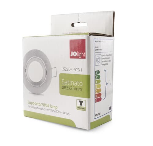 CaratteristichePorta lampada professionale in metallo adatto per installazioni da incasso.Fissaggio lampada tramite ghiera a scatto.Rotazione: -35° +35°Adatto per uso interno.** Caratteristiche Elettriche **Potenza max installabile: 50W**Caratteristiche Meccaniche **Altezza: 25mmDiametro: ø83mmForo incasso: ø75mmMateriale corpo: Zamak (Zinco-Alluminio)Colore corpo: SatinatoFinitura: OpacaOrientabile: si