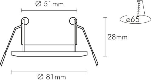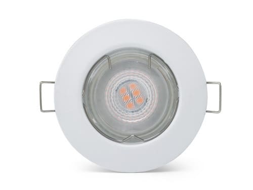 CaratteristichePorta lampada professionale in metallo adatto per installazioni da incasso.Fissaggio lampada tramite molletta.Adatto per uso interno.** Caratteristiche Elettriche **Potenza max installabile: 50W** Caratteristiche Meccaniche **Altezza: 28mmDiametro: ø81mmForo incasso: ø65mmMateriale corpo: AcciaioColore corpo: BiancoFinitura: LucidaOrientabile: no