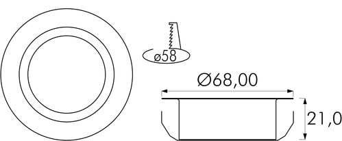 ** Caratteristiche Elettriche ** Potenza max installabile: 20W ** Caratteristiche Meccaniche ** Attacco: G4 Altezza: 21mm Diametro: ø68mm Foro incasso: ø58mm Grado di protezione: IP20 Materiale corpo: Alluminio verniciato Colore corpo: Lucido Finitura: Lucida Diffusore: Vetro opaco Orientabile: no
