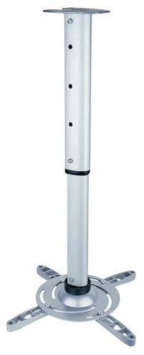 Supporto a soffitto per proiettori.Estensione da 40 a 62cm.** Caratteristiche Generali **Tipologia montaggio: Da soffittoRotazione (Pivot): 0°Inclinazione (Tilt): 30°Orientamento (Swivel): 360°Colore: Grigio** Caratteristiche Meccaniche **Avanzamento TV: ManualeMateriale: Alluminio e acciaioDimensioni (WxH): 182mm x 620mmDistanza dal muro: 40cmPortata: 15KgPeso prodotto: 2KgBolla di livello: NoSistema di bloccaggio: NoGestione cavi: SiInnesto a baionetta: NoKit di montaggio: Incluso