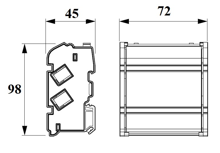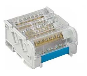 Morsettiere di ripartizione protette. Inserti in Ottone e viti di serraggio in Acciaio Zincato. Supporti in Poliammide e coperchio in policarbonato. Temperatura di esercizio da -5°C a +85°C, resistenza calore +130°C.