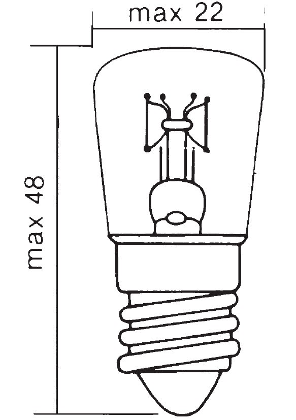 Lampada piccola pera 230 V 15 W. Filamento C-7A. Per frigoriferi. 26x57. Attacco E 14