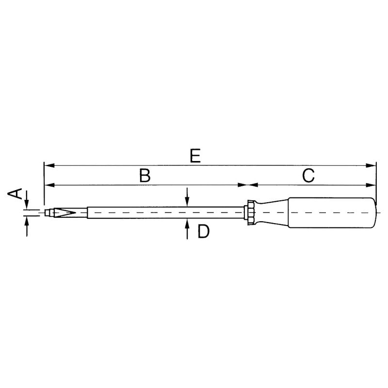 Cacciavite per viti a testa con intaglio. Cacciavite a taglio. Peso gr. 21. Con rivestimento in polipropilene. Con lama in acciaio al molibdeno-vanadio, brunita nera. Impugnatura anatomica in polipropilene, con foro trasversale per trasmissione di elevati momenti di forza e per appendere. il cacciavite. Costruiti secondo le restrittive norme DIN IEC 78(Co)11. (IEC 900) / VDE 0680 parte 201 / EN 60900 / VDE 0682 parte 201. 1000 V - VDE
