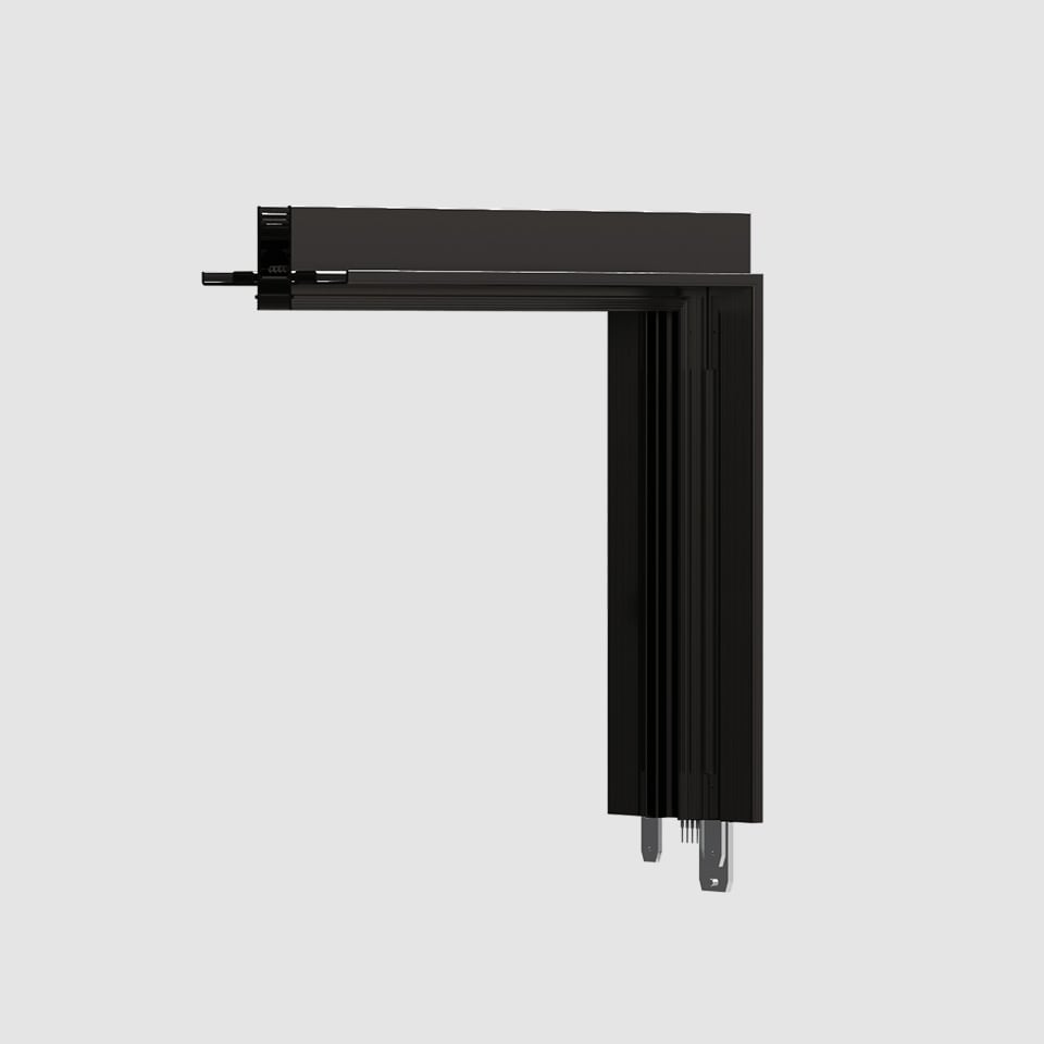 A.24 - Binario Magnetico Incasso - 90° Giunto Angolare Incasso Parete/Soffitto (piani perpendicolari) - Nero.A.24 è un nuovo sistema completo e flessibile per disegnare la luce nello spazio. Un unico profilo di soli 24 mm può essere installato a incasso, soffitto o sospensione senza soluzione di continuità anche nel seguire gli angoli su una superficie piana o in tre dimensioni. All’interno di questo profilo si inseriscono diverse performance: luce diffusa, ottiche sharp in tre aperture o un intelligente binario magnetico. A.24 diventa così non solo un sistema flessibile ma una piattaforma aperta ad accogliere altri prodotti della collezione Architectural. Nella versione a sospensione queste performance possono essere integrate con emissione indiretta. Le tre soluzioni possono intervallarsi per seguire con la massima flessibilità l’architettura e la funzionalità degli ambienti. La competenza di Artemide si svela non solo nella qualità di luce ma anche nella capacità di A.24 di muoversi liberamente nello spazio con punti di connessione elettrica diretta distanti anche fino a 14 metri.