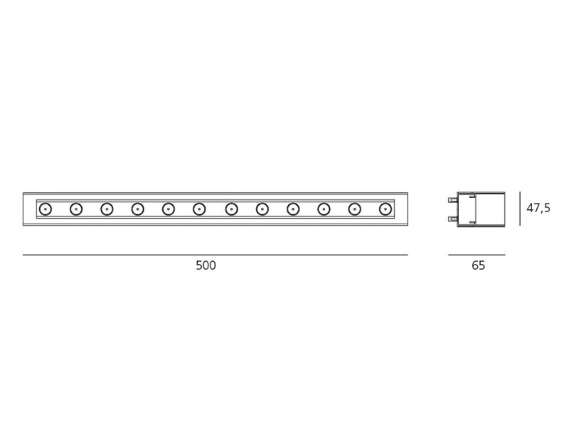 Apparecchio di illuminazione che impiega sorgenti a LED ad alto rendimento.Installazione ad incasso a terra. Costituito da Corpo in estruso di alluminio,vetro di protezione; equipaggiato di scatola alimentazione per collegamento entra/esci. Fissaggio corpo alla cassaforma tramite apposite molle di acciaio armonico in dotazione col prodotto. Alimentatore remoto a 24Vdc. Collegare un numero massimo di 5 prodotti in linea continua. Caratteristiche tecniche degli apparecchi conformi alla EN60598-1. Il montaggio va eseguito da personale specializzato. Seguire scrupolosamente le istruzioni. Ottica Medium Permette di ottenere flussi luminosi medi ed evidenziare particolari e grandi sezioni o finestre.(ottica 25°). Lunghezza: cm 50. Categoria: LED. Numero: 2 x 6. Watt: 8,5W. Flusso Luminoso (lm): 1776lm. Temperatura Colore (K): 3000K. Classe: A. Voltaggio: 24Vdc.