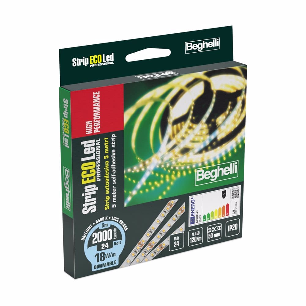 StripLED High Performance Strip LED autoadesive professionali alte prestazioni Le Strip EcoLED High Performance Beghelli sono strisce flessibili a LED autoadesive professionali ad alta densità di LED per una eccellente uniformità luminosa. La vasta gamma di accessori facilitano qualsiasi tipo di installazione. Da alimentare con starter 24V Beghelli