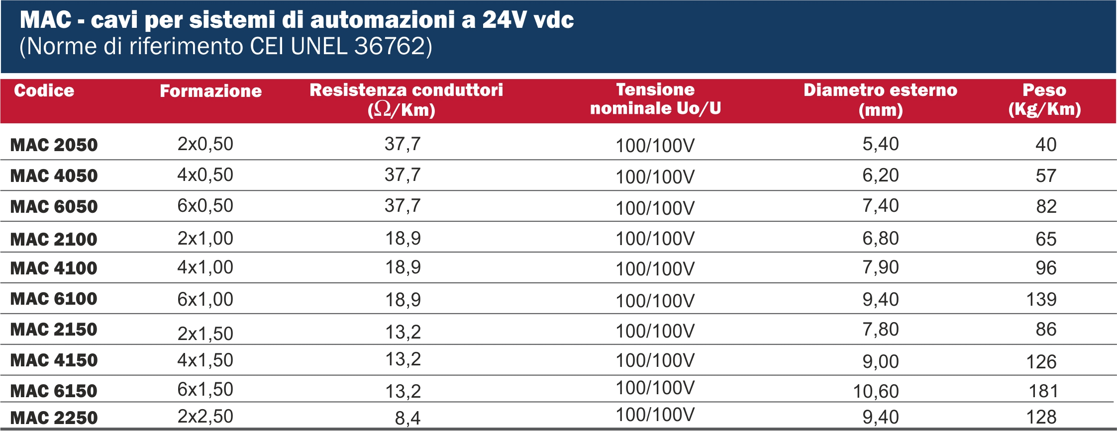 MAC 4050 E BB FLEXCavo per sistemi automazione cancelli e barriere a 24 Vdc.Cavo idoneo alla posa in coesistenza con cavi energia 230V 400V.Realizzato con conduttori in rame, guaina esterna in BBflex, idoneo alla posa in condizioni critiche in ambienti esterni umidi e bagnati.Filler riempitivo interno garantisce la massima stabilita e prestazioni ottimali in ogni condizione di utilizzo.Euroclasse EcaFormazione: 4x0,50Imballo: matassa in termoretraibile da 100m