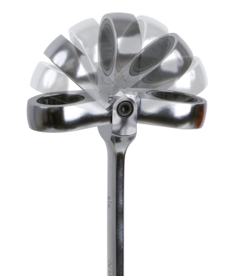 Serie di 9 chiavi combinate a cricchetto snodate (art. 142SN)con supporto compatto_x000D_8-10-11-12-13-14-15-17-19 mm