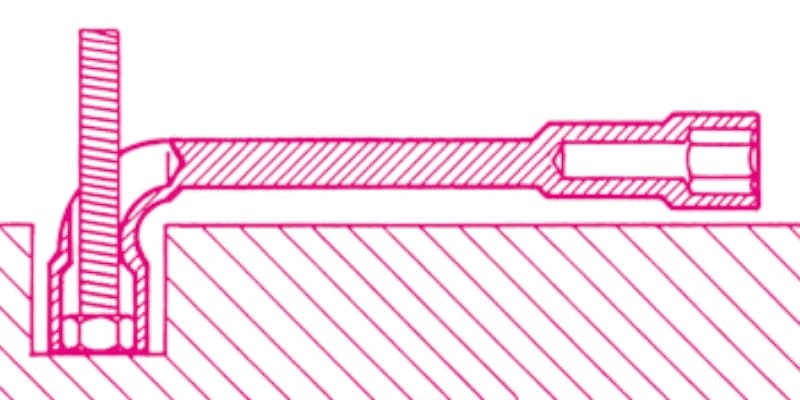 ? Particolare trattamento termico per aumentarela durezza superficiale.? Si differenziano dalle chiavi a pipa mod.937 perl'accurata finitura lucidadi tutte le superfici, ottenutaattraverso processi di lavorazione meccaniche e manuali.? Utilizzabile con asta dimanovra introdotta nel foro passante.? Il foro sul lato corto permette l'accesso al dadoanche in caso di filettaturesporgenti.