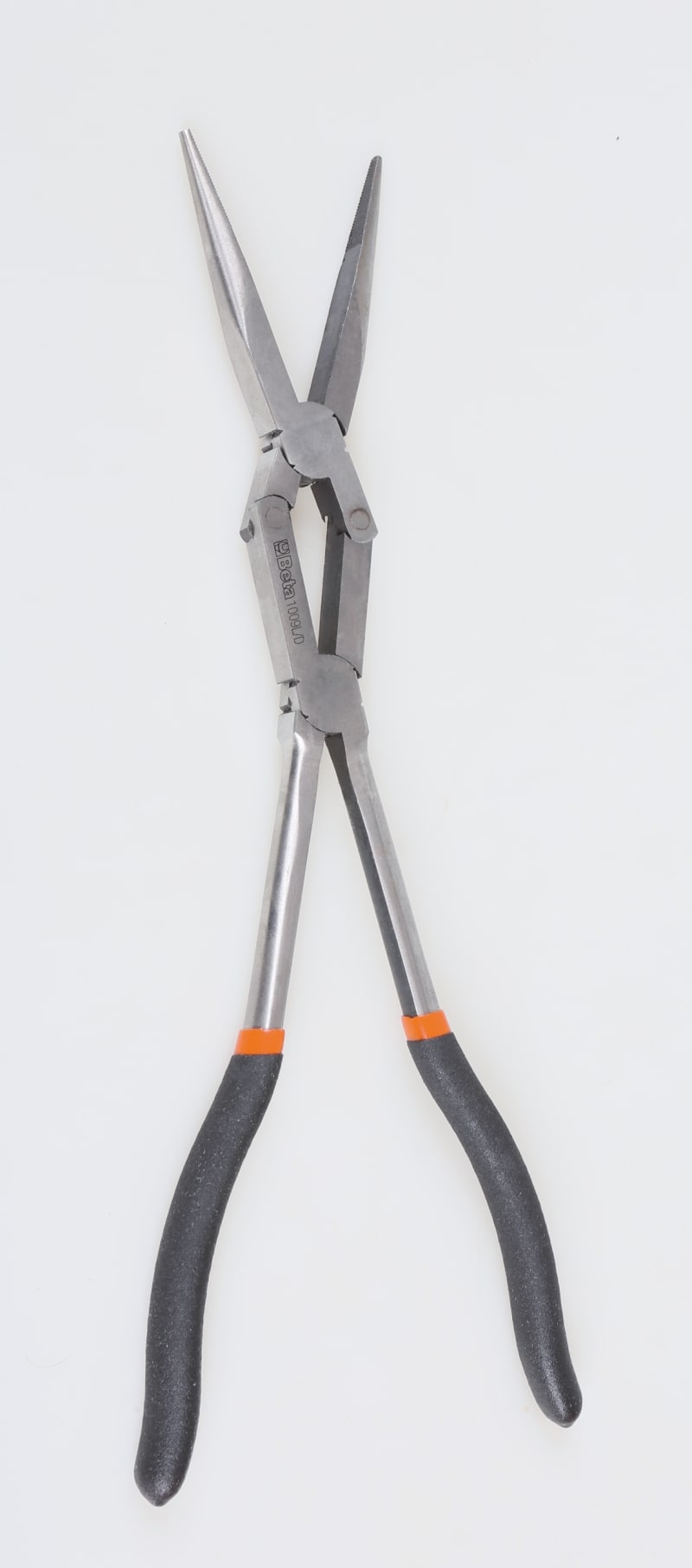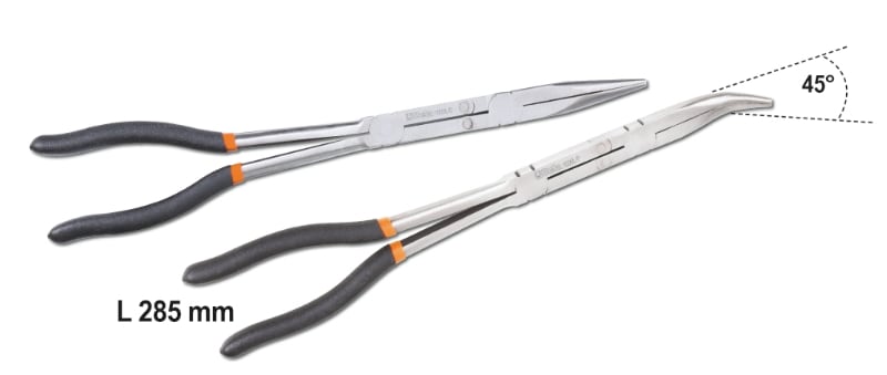 Serie di 2 pinze a becchi mezzotondi lunghissimi zigrinaticon doppio snodo