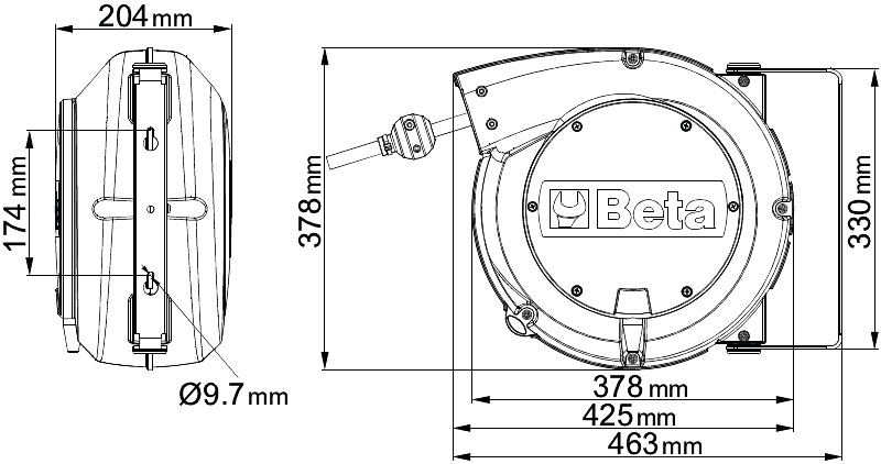 Caratteristiche:? Pressione di utilizzo massima 15 bar? Tubo in Poliuretano retinato? Struttura in Polipropilene? Dispositivo automatico di arresto del tubo alla lunghezza desiderata? Cremagliera disinseribile per tubo sempre in trazione? Temperatura di utilizzo -5?C/+50?C? Fornito con staffa orientabile di 180? e seconda staffa a incastro rapido