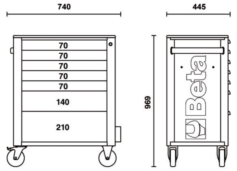 La cassettiera portautensili Beta RSC24/7 e l'evoluzione della storica cassettiera C24S, progettata per soddisfare le esigenze di ogni professionista. La struttura robusta e i materiali impiegati garantiscono un'elevata qualita e una lunga durata nel tempo. Il design, ispirato al mondo Racing, conferisce alla cassettiera uno stile accattivante e inconfondibile. RSC24/7 e inoltre disponibile in 7 colorazioni diverse e personalizzabile al massimo, grazie all'ampia gamma di accessori disponibili.Modello7 cassetti da 588x367 mm a estrazione totale, montati su guide telescopiche a sfera: ? 5 cassetti altezza 70 mm? 1 cassetto altezza 140 mm? 1 cassetto altezza 210 mm Caratteristiche: ? Piano di lavoro rinforzato in ABS, solido e robusto ? Piano di appoggio multifunzione con bordi anticaduta e 8 fori per l'alloggiamento dei giravite ? 4 ruote ? 125 mm di cui 2 fisse e 2 girevoli (una con freno) ? Serratura di sicurezza centralizzata frontale ? Capacita di carico statico pari a 800 kg ?Porta flaconi laterale integrato, applicabile su entrambi i lati ? Piano dei cassetti protetto da tappetini di gomma espansa ? Possibilita di inserire in ogni cassetto fino a 4 vassoi morbidi in EVA o termoformati rigidi in ABS Accessori integrabili: ? Piano di lavoro in legno 2400 RSC24/PL ? Pannello forato portautensili 2400 RSC24/PF ? Supporto porta computer 2400 RSC24/SPC ? Mensola pieghevole 2400 RSC24/MP ? Porta documenti 2400 RSC24/PD (grigio antracite oppure nero) ? Portacarta per rotoli preforati 2400 RSC24/PC (grigio antracite oppure nero)