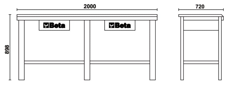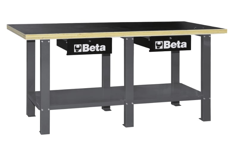 ? Piano di lavoro in legno multistrato con fori per la collocazione di una morsa 1599F/125 - 1599GI/125 (da ordinare separatamente)? Struttura in acciaio con 6 gambe di sostegno? Capacita di carico statico: 1.200 kg? Abbinabile alla parete C57SP (nonfissabile al piano di lavoro).? Due cassetti dotati di serratura.? Predisposizione per il fissaggio al pavimento.