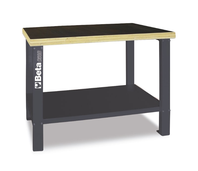 Caratteristiche principali:? Piano di lavoro in legno multistrato con fori per la collocazione di una morsa 1599F/125 - 1599GI/125 (da ordinare separatamente).? Struttura in acciaio con 4 gambe di sostegno? Capacita di carico statico: 800 kg.? Ripiano inferiore portaoggetti con capacita di carico 150 kg. (uniformemente distribuiti)? Predisposizione per il fissaggio al pavimento1500x930x720 mm
