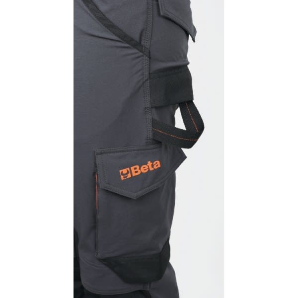Pantaloni da lavoro multitasche elasticizzati. Composizione: • Tessuto elasticizzato 90% nylon, 10% spandex, 260 g • Tasche per ginocchiere, tasche posteriori e fondo gamba rinforzati in poliestere 600D. Design: • Vestibilità asciutta • Cavallo antistrappo • Vita più alta nella parte posteriore per maggiore protezione della schiena • Due ampie tasche anteriori, di cui una dotata di taschino con chiusura zip orizzontale • Due tasche posteriori con chiusura a strappo • Su gamba sinistra ampio tascone laterale con chiusura a strappo dotato di taschino verticale con chiusura zip • Tasca frontale su gamba destra con chiusura zip orizzontale • Ampie tasche per ginocchiere con chiusura a strappo • Tasca porta metro e nastro porta martello. Colore: Antracite