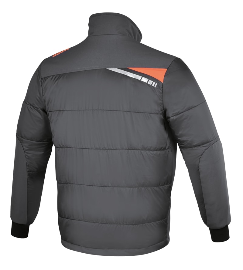 Composizione:? Imbottitura in GRAPHENE 80 g,? Tessuto esterno: fronte e spalle: in tessuto softshell 96% poliestere, 4% spandex, retro e maniche: in 100% nylon 20D? Tessuto interno: 100% poliestereDesign:? Chiusura frontale doppia con zipe bottoni automatici? Due ampie tasche in vita con chiusura zip e garage di protezione? Due tasche al petto con patella e chiusura a velcro e una con taschino laterale con chiusura zip? Una tasca interna? Inserto elastico sul giromanica? Regolatori a coulisse in vitaColore:Fronte: grigio antraciteRetro e maniche: neroTaglie:S, M, L, XL, XXL, XXXL