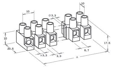 2,5 mm2, •Materiale del corpo isolante: Poliammide (PA 6.6) naturale •Autoestinguenza: UL 94 - V2; IEC 695-2-1 a 850°C e IEC 695-2-2 •Temperatura ambiente di utilizzo: T 125°C •Temperatura di breve durata: T 160°C •Tensione nominale: 400 V •Tensione di prova: 2500 V •Corrente di prova: 24 A (2,5 mm2); 32 A (4 mm2) •Morsetto femmina: Ottone nichelato •Viti imperdibili: M 3x6 in acciaio zincato •VERSIONE PER ALTE TEMPERATURE:Nylon rinforzato con fibre di vetro 25% UL 94 V-0 •Temperatura continua d’esercizio: T 150°C, per brevi periodi 200°C •VERSIONE CON LAMELLA DI PROTEZIONE: in acciaio inox •NORME DI RIF. EN 60998-1: 2004 EN 60998-2-1: 2004