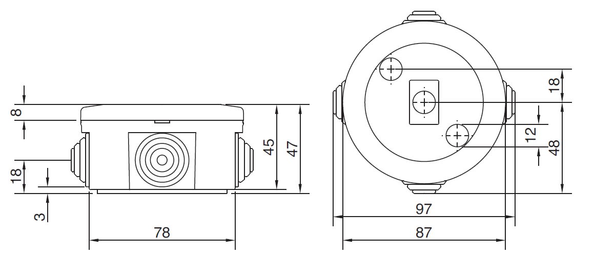 Kabelabzweigkasten IP44 ABS Ø 80x40 GRAU RAL 7035