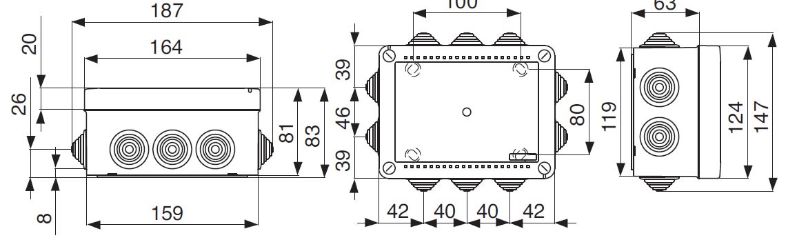 Cassetta di derivazione IP55 grigia 150x110x70 1/4 di giro IP55 03 GRI