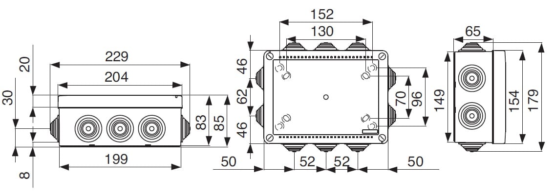 Cassetta di derivazione stagna da parete della linea Pico, misura 04, con coperchio standard e 10 passatubi laterali per tubi rigidi da 16, 20, 25 e 32 mm, ideale per proteggere e organizzare le connessioni elettriche indoor e outdoor. Realizzata in ABS autoestinguente grigio (RAL 7035), offre resistenza ai raggi UV e agli impatti IK07. Il sistema di chiusura con viti in plastica a 1/4 di giro garantisce una protezione IP55. Dimensioni 190x140x70 mm (LxHxP).