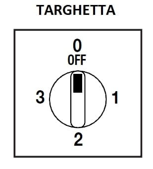 Commutatore amperometrico unipolare per 3 riduttori, montaggio retroquadro con viti, mostrina trasparente 52x52mm, manopola nera, IP40