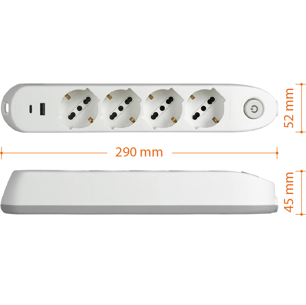 BTICINO - BTI3684DBU MULTIPRESA 4 SCHUKO/BIPAS+INTER+2USB BIA - 3684DBU