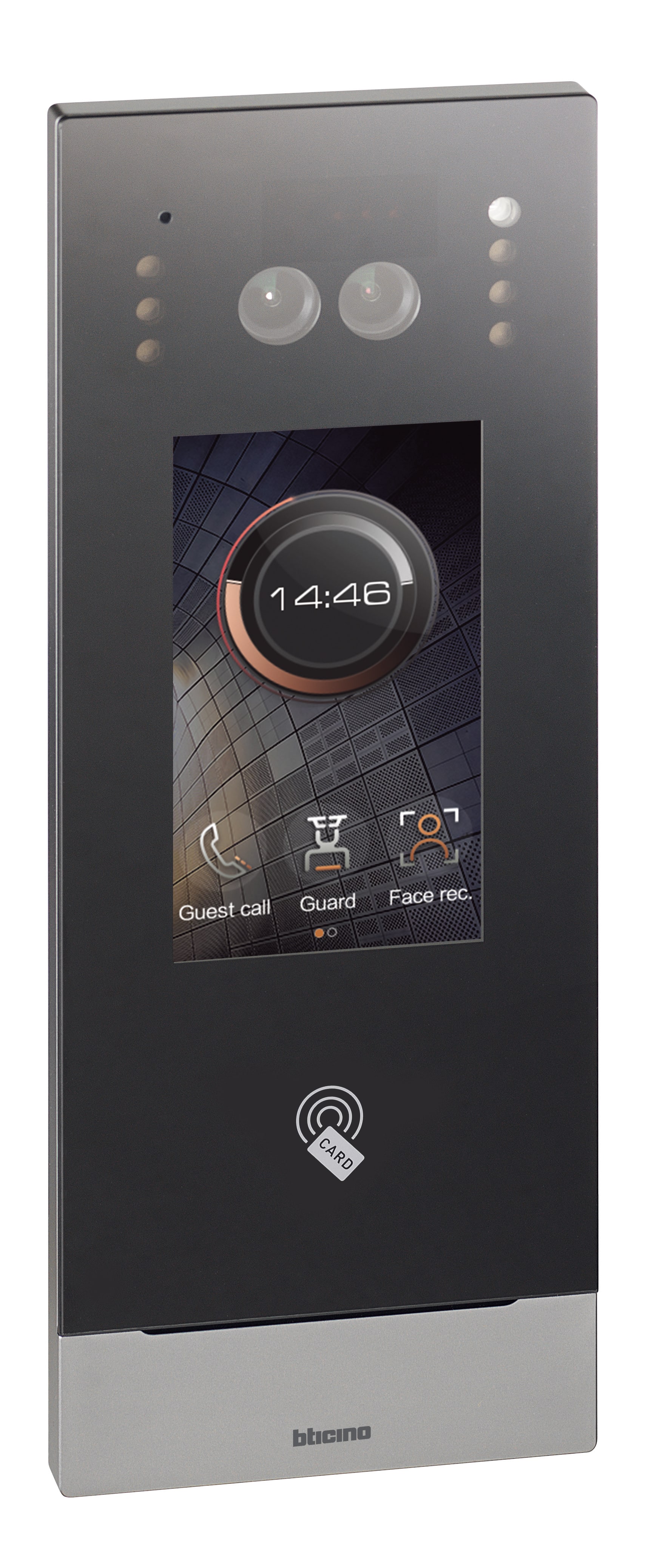 Pulsantiera esterna video con display touch verticale 4,3”, riconoscimento facciale e lettore badge RFID per funzioni di controllo accessi.Tramite display touch è possibile effettuare le chiamate agli appartamenti, al centralino di portineria e inserire il codice di accesso per attivare l’apertura dell’elettro serratura. Configurazione per diverse modalità di chiamata:- Codice appartamento (Area - Condominio - Scala - Piano - Appartamento)- Codici numerici o alfanumerici per i residenti- Rubrica con elenco contattiAccesso al menù per la manutenzione e per la gestione delle impostazioni (es. luminosità della retroilluminazione, volume della suoneria, volume dell’altoparlante, volume tasti, durata dello screensaver). Possibilità di caricare screensaver personalizzati tramite il software di configurazione. Il dispositivo può essere alimentato tramite PoE (power over Ethernet) o direttamente tramite l’alimentatore 375005.Installazione da incasso con scatola dedicata 375009.