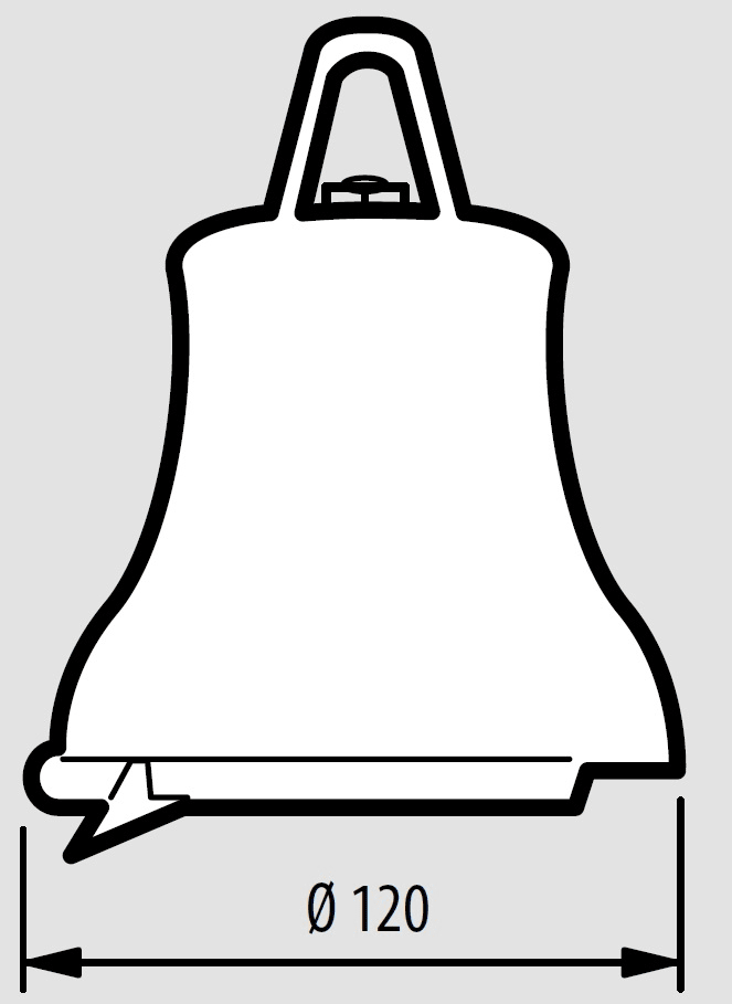 Campana in bronzo diametro 120 mm completa di staffa per fissaggio da parete. Alimentazione 24 Vac - 400 mA