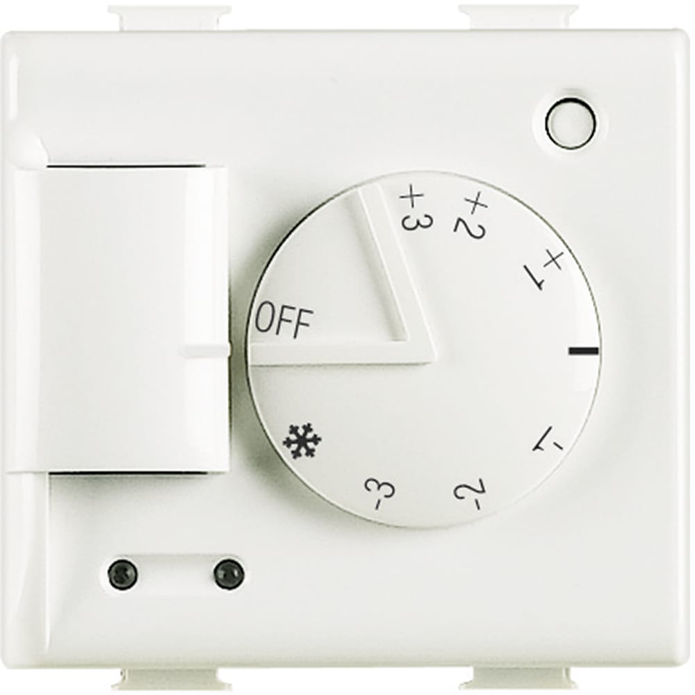 Sonda Matix per il controllo della temperatura ambiente per impianti di riscaldamento e raffrescamento. Dotato di manopola per la variazione di ± 3 °C rispetto alla temperatura impostata nella centrale e per la selezione delle modalità OFF e antigelo - 2moduli.