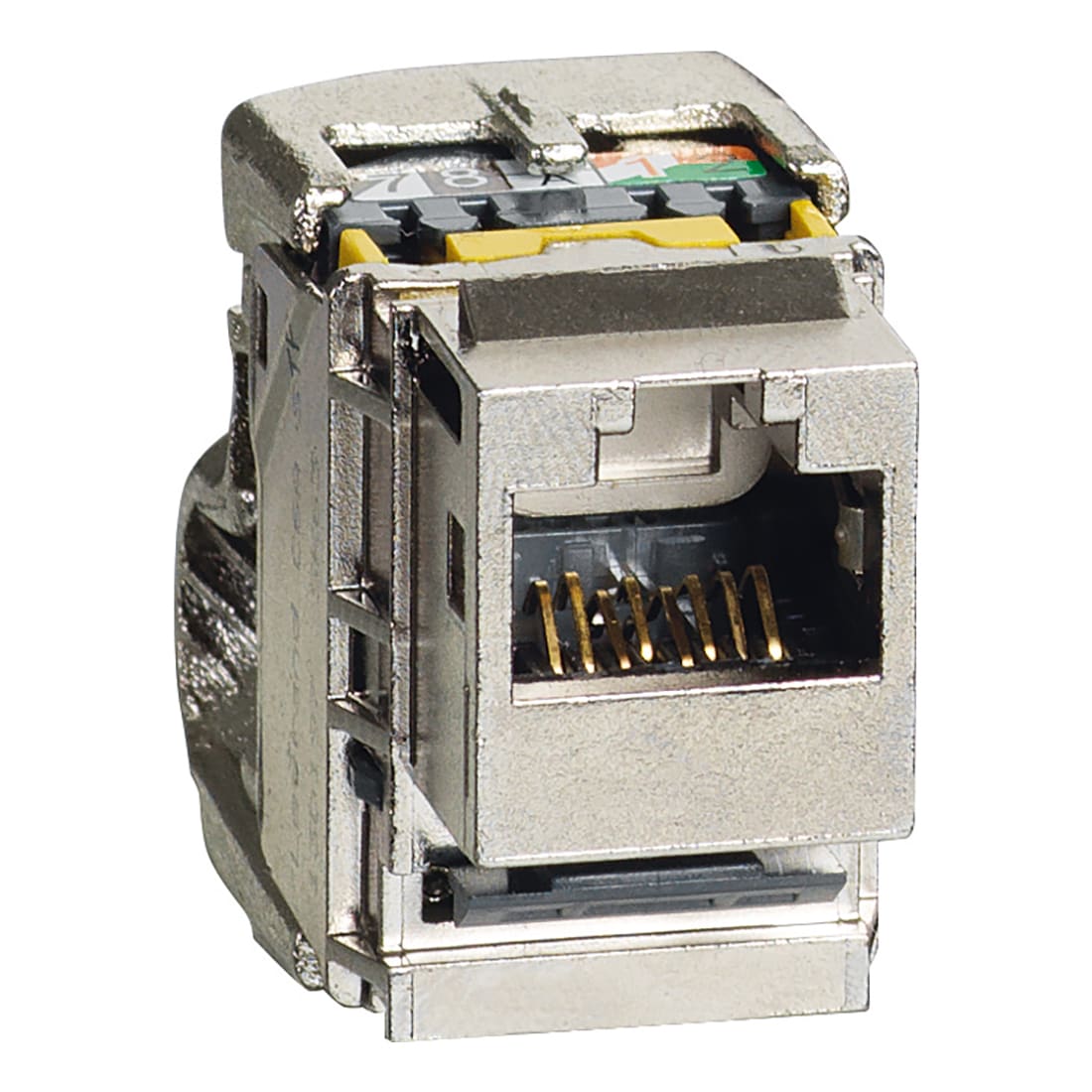 Connettori RJ45 cat 6A STP con attacco universale keystone - connessione ad incisione d’isolante senza attrezzi - per cavo U/UTP 22÷24 AWG a 4 coppie 100? - conforme alla normativa EN 50173-1 e EIA/TIA 568 A/B - non installabile su pannelli di permutazione - colore nero