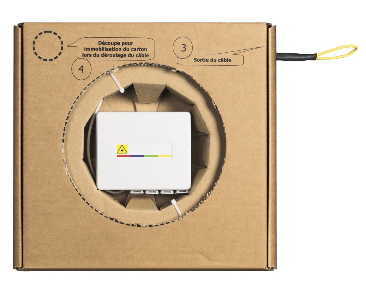 STOA (scatola di terminazione ottica di appartamento da 70 metri) preterminata in box con cavo preterminato 4 fibre e sistema di tiraggio.