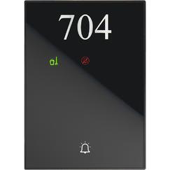 indicatore fuori porta con finitura placca colore NERO in materiale plastico.Comprende indicatore NON DISTURBARE (DND) e RIORDINARE LA CAMERA (MUR) e pulsante per suoneria.Il dispositivo è dotato di un contatto pulito NC comandato dal simbolo suoneria. il contatto è programmabile per la funzione suoneria o comando elettro-serratura porta.Installazione in verticale.Collegamento a SCS-BUS, dimensioni 3 moduli.