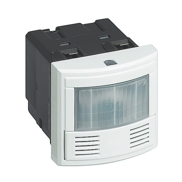 Green Switch: Sensore BUS-SCS a doppia tecnologia: infrarossi passivi (PIR) ed ultrasuoni (US), adatto per il rilevamento della presenza e del livello di illuminamento, installazione ad incasso in serie civile (Axolute, LivingLight o Màtix), dimensioni 2moduli, grado di protezione IP20, connessione tramite connettore SCS, area di copertura frontale di 8m per un ampiezza di 180° ad un’altezza di installazione di 1.2 m, altezza massima di installazione di 1.2 m, alimentazione 27 V d.c., regolazione tramite telecomando base/avanzato (088240 e BMSO4001) o tramite gli appositi software di configurazione, del livello di illuminamento da 5 lux a 1275 lux, del tempo di ritardo da 5 s a 59m e dei principali parametri di funzionamento.