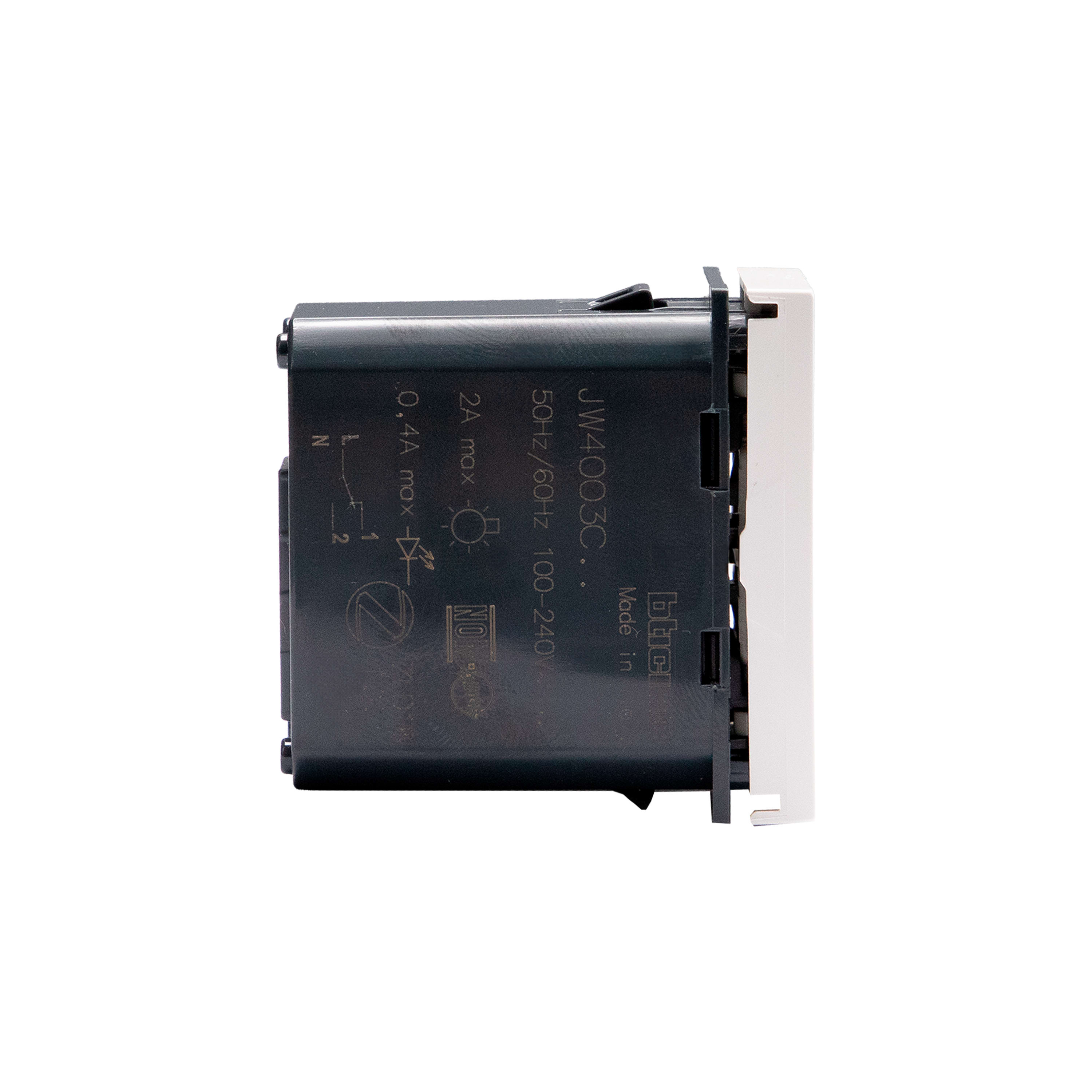 Deviatore connesso. Permette di controllare le luci localmente o da remoto. Si installa come un deviatore tradizionale ed e compatibile con tutti i carichi con potenza massima di 250 W. E dotato di un LED blu, configurabile dall’APP HOME + CONTROL, per le funzionalità di localizzazione e stato carico. Può essere associato ad uno o più comandi wireless. Attenzione: è necessaria la connessione al neutro. Alimentazione 110-230 Va.c. - 1 modulo - bianco