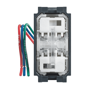 Commutatore 1P 10 AX, 250 Va.c., a doppio tasto 1-0-2 per Hotel, ILLUMINATO - 1 modulo (Il LED è sostituibile con art. K4743V230RG)