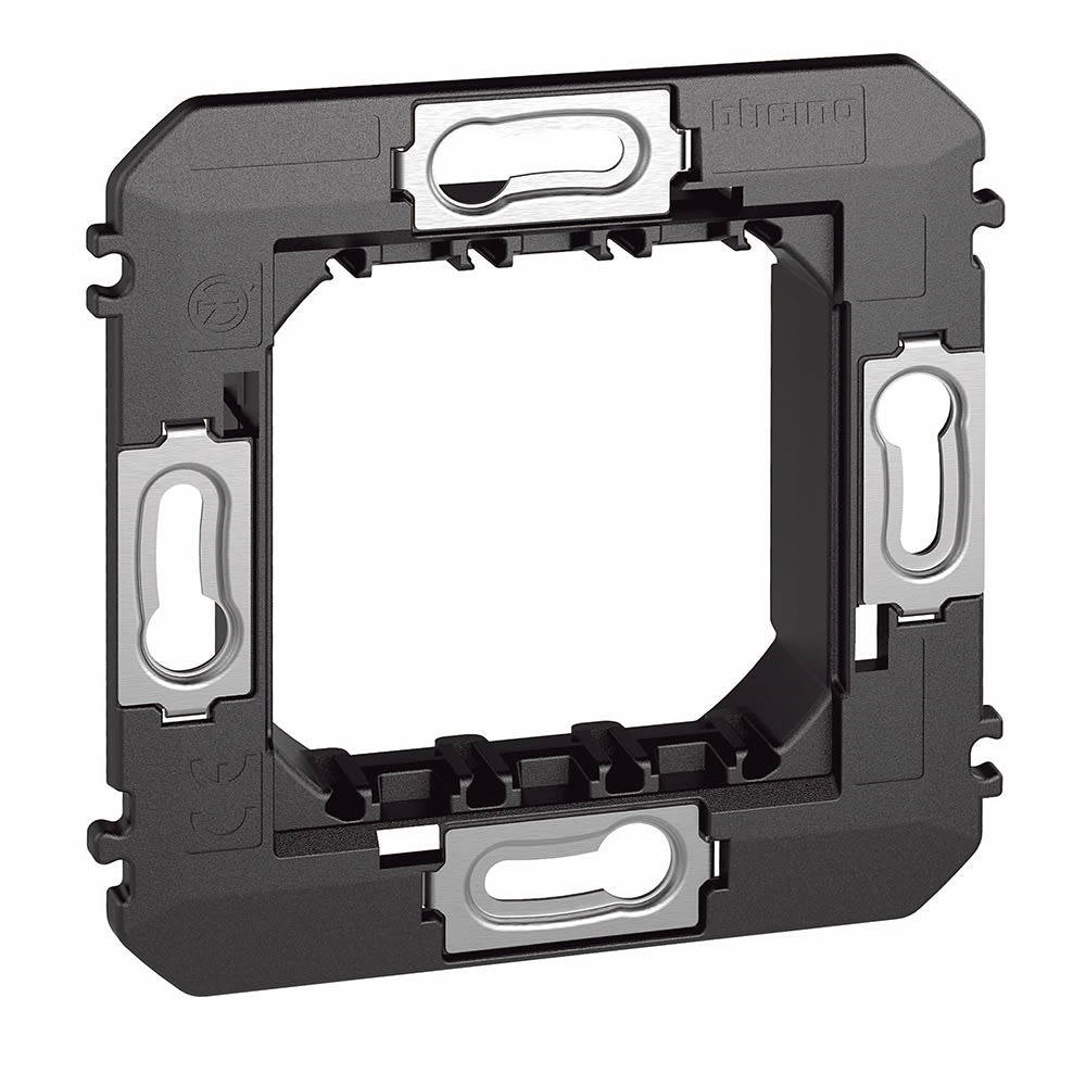 Supporto per montaggio dei frame elettrificati art. KW8102P1, art. KG8102P1 e art. KM8102P1 per comandi digitali MyHOME in scatole 2 moduli.