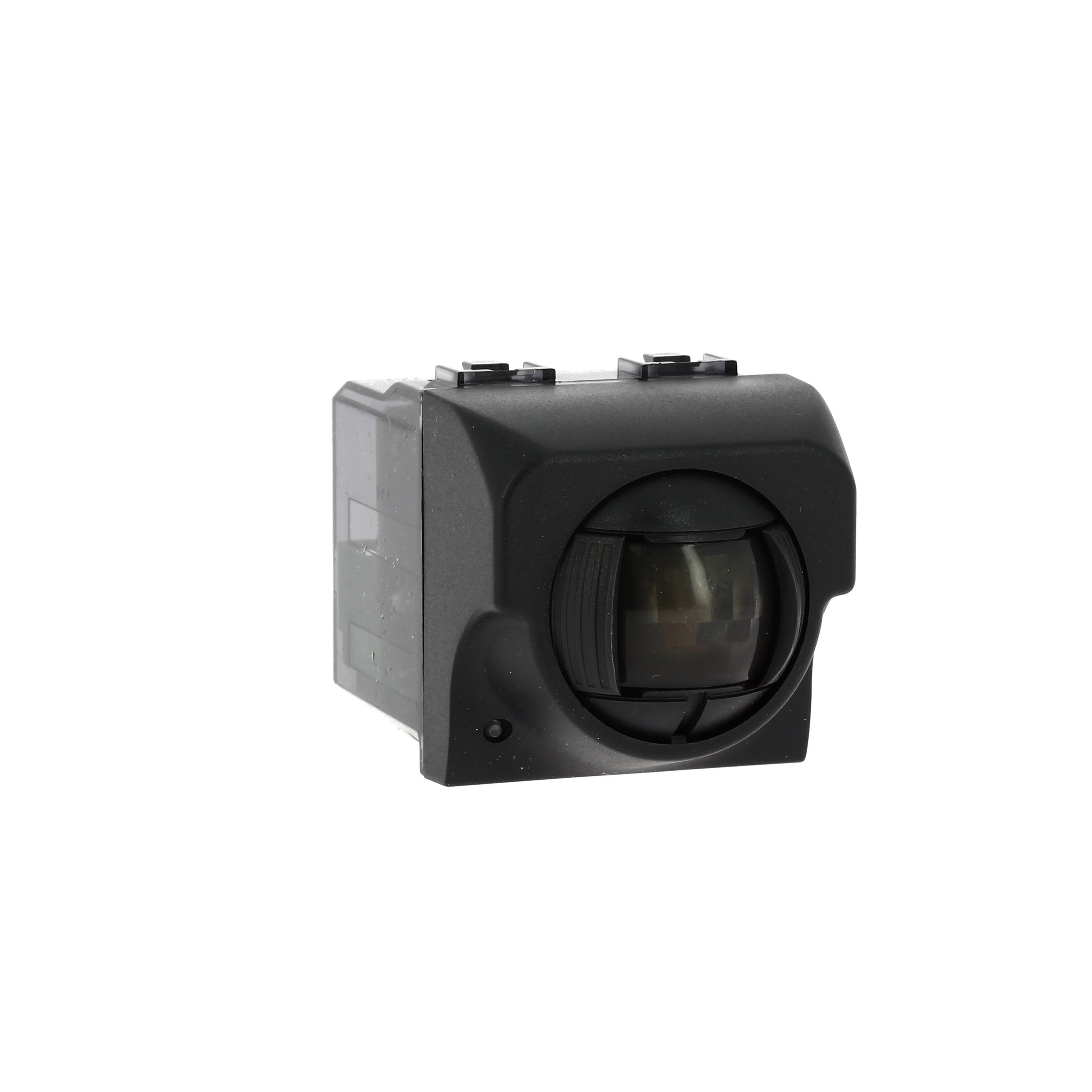 Rilevatore a doppia tecnologia (PIR + MW) - portata 8m - installazione ad incasso - 2 moduli - estetica LIVINGLIGHT colore grigio antracite.
