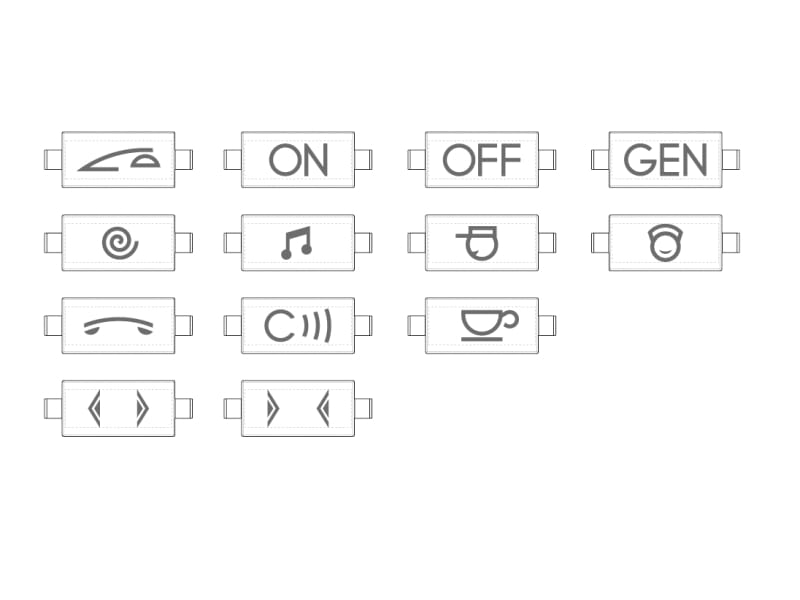 kit di lentine per copritasto personalizzabile - 13 simboli grafici - 5 per tipo (per comandi assiali) - Bianco
