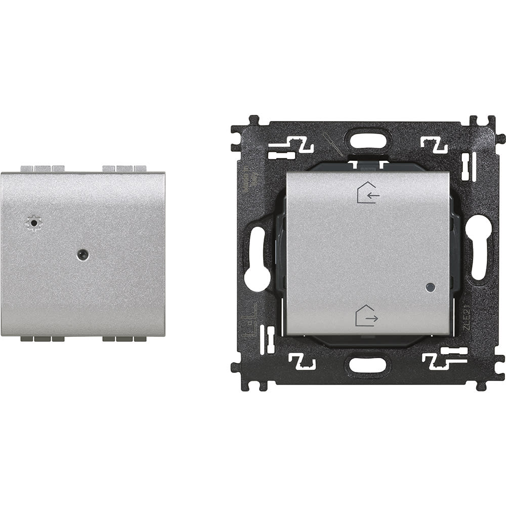 Gateway per creare un installazione connessa della casa. Può essere usato per controllare luci, tapparelle e apparecchiature elettriche collegate a prese connesse utilizzando lo smartphone e l’app Home + Control, gli assistenti vocali e il comando generale all’ingresso della casa. Fornito con il comando scenario master Entra&Esci wireless NT4570CW necessario per la procedura di associazione di tutti i dispositivi connessi. Alimentazione 110-230 Va.c. - 2 moduli