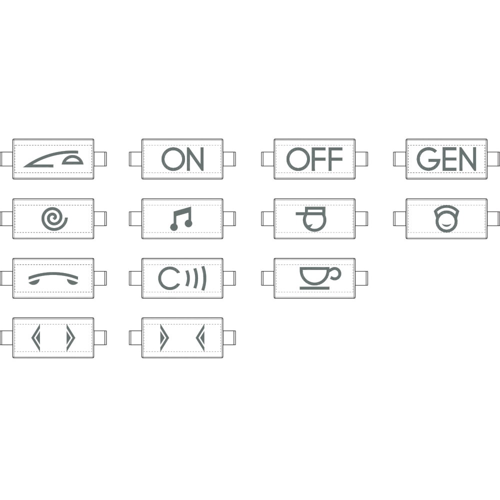 kit di lentine per copritasto personalizzabile - 13 simboli grafici - 5 per tipo (per comandi assiali) - Tech