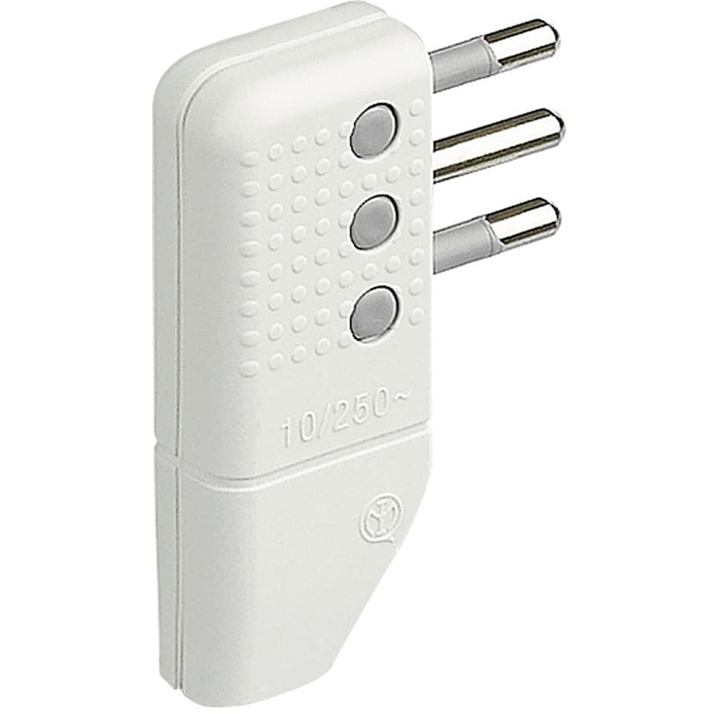 Spina corner a squadra 2P+T 16A salvaspazio con spinotti orientabili in linea o a squadra di colore bianco