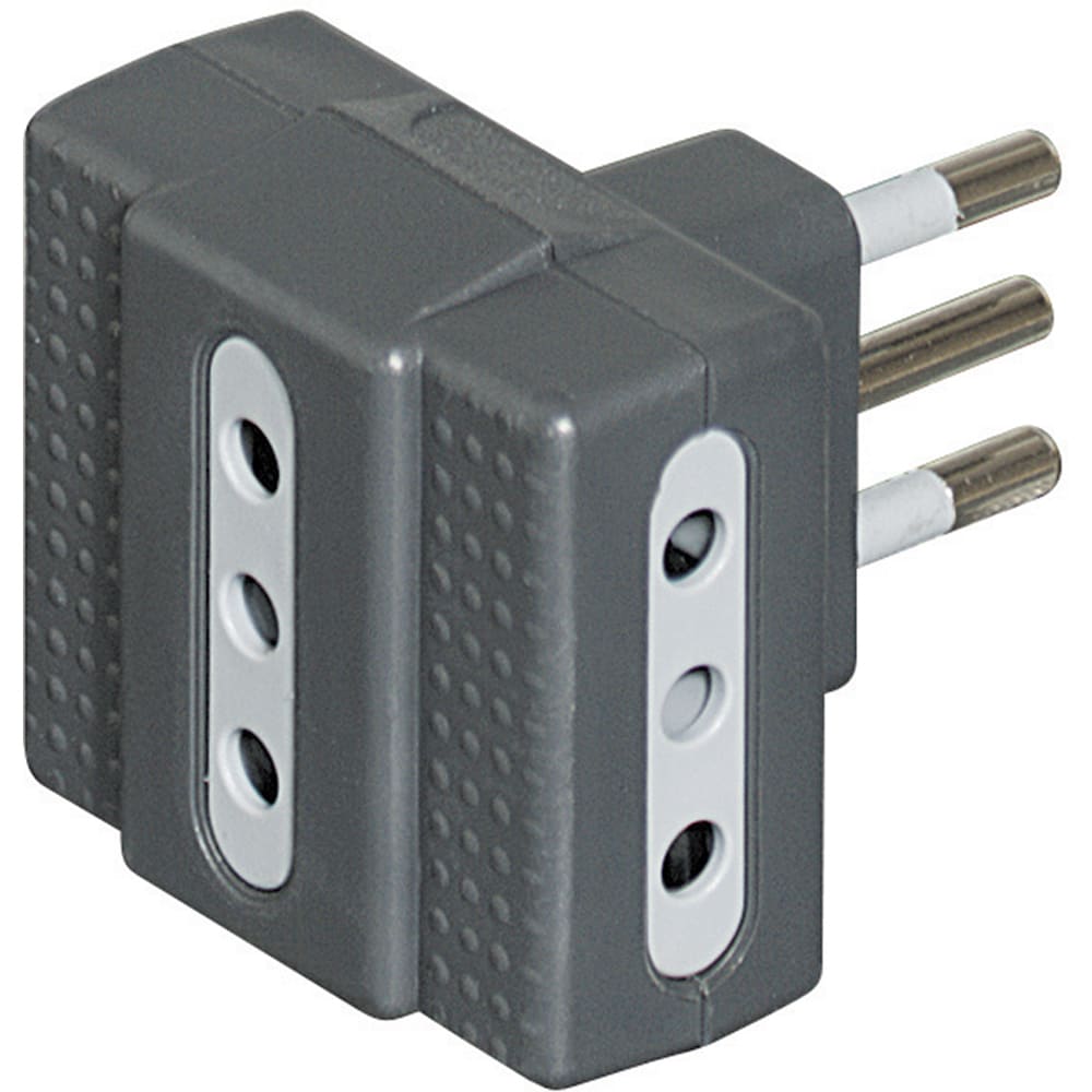Adattatore TRIS con 3 prese 10A e spina 10A antracite. Venduto in blister 90x122 mm (LxA)