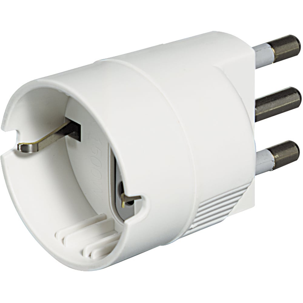 Esp (quantità minima 160) Adattatore con spina 2P+T 16A e presa standard tedesca di colore bianco