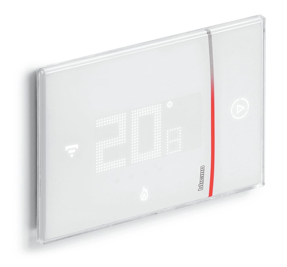 Termostato connesso Smarther 2 with Netatmo bianco. In abbinamento con la APP Home + Control permette di regolare e monitorare la temperatura all\'interno degli ambienti in modo preciso e puntuale; tutta la programmazione e gran parte delle funzioni vengono effettuate in maniera semplice e intuitiva utilizzando la APP. Grazie alla connessione Wi-Fi di cui è dotato, Smarther 2 with Netatmo può essere programmato e comandato da remoto; permette inoltre di visualizzare la temperatura e l’umidità misurate nell\'ambiente. Localmente sono possibili l’impostazione del livello di temperatura per il funzionamento manuale e l’attivazione della modalità Boost, che permette di forzare l’accensione dell’impianto per un periodo limitato (30, 60 o 90 minuti) indipendentemente dalla temperatura misurata e da quella programmata. È possibile anche impostare una temperatura differente in ogni stanza della casa per il massimo comfort, in quanto è compatibile con le valvole termostatiche intelligenti di Netatmo. Il termostato connesso Smarther 2 with Netatmo è comandabile tramite assistenti vocali Google, Amazon Alexa e Apple Home Kit.Principali caratteristiche:- Classe Energetica 4- Alimentazione 110 ÷ 240 Vac, 50/60 Hz- Assorbimento 2 W max- Sezione massima dei cavi 1 x 1,5 mm2- Temperatura di funzionamento 5 ÷ 40°C- Incrementi di 0,5 °C- Uscita 1 contatto in deviazione libero da potenziale 5(2)A.- Tipo azionamento 1BU- Grado inquinamento 2- Tensione impulsiva nominale 4kV- Dispositivo wireless conforme allo standard802.11b/g/n, frequenza 2.4 ÷ 2.4835 GHz, potenza di trasmissione <20 dBm. Protocollo di sicurezza WPA/WPA2Installazione da:- Incasso, su scatole art.503E o art.500 (per art.500 prevedere fissaggio tramite tasselli nel muro)- Cartongesso, su scatole art.PB503N e art. PB502N