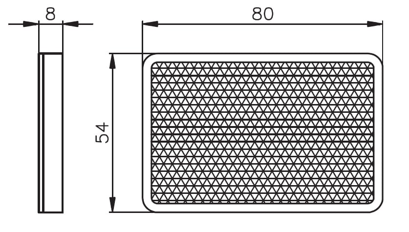 Catarifrangente di elevata qualità per tutte le fotocellule a riflessione. Montaggio: adesivo Dimensioni L x H x P (mm) : 80.0 x 54.0 x 8.0. Materiale: PMMA / ABS Temperatura di esercizio: da -20 a +60° C Grado di protezione: IP69K.