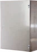 Cassetta composta da corpo, porta esterna cieca, piastra interna fissata sul fondo. • Corpo in acciaio inox AISI304 satinato scotch brite sp.12/10 pressopiegato e saldato • Porta in acciaio inox AISI 304 satinato scotch brite sp. 12/10 • Piastra interna in lamiera sp. 15-20/10 sendzimir • Guarnizioni, poliuretaniche applicate in colata continua • Cerniere reversibili con apertura 110° • Serratura con impronta doppia aletta • Grado di protezione IP 66 - TYPE 4X