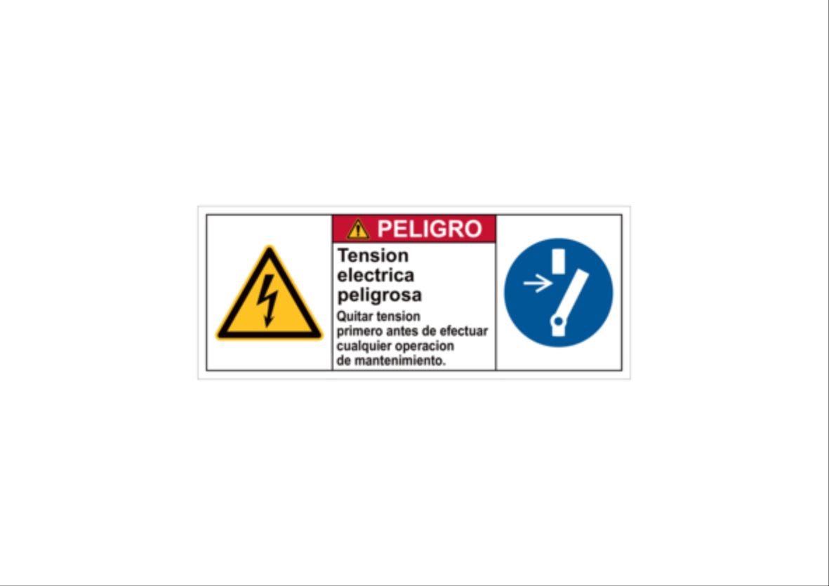 Etichetta adesiva per impianti elettrici, testo "pericolo, tensione elettrica pericolosa"