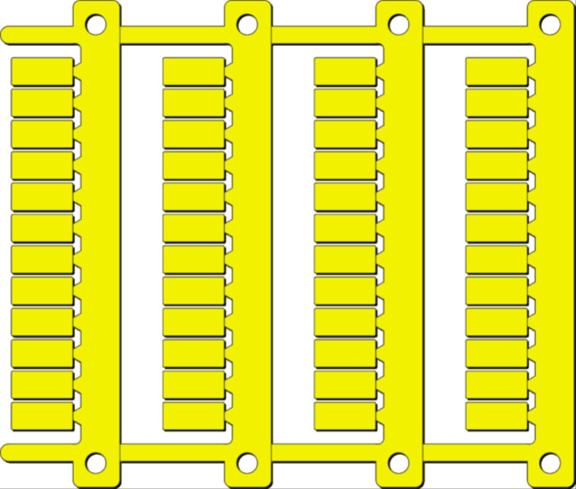 La gamma di targhette MG-CPM consente di siglare rapidamente e con semplicita tutti i morsetti componibili delle marche piu utilizzate nel mercato italiano ed estero. Le targhette di siglatura in formato a schede sono disponibili sia in strisce modulari a passo sia come targhette singole, questo permette di marcare in modo comodo ed efficace diverse sezioni di morsetti riducendo notevolmente i tempi di montaggio. Le targhette MG-CPM garantiscono un?elevata resistenza meccanica ed un?eccellente stabilita dimensionale, la stampa per trasferimento termico permette di stampare in modo permanente (indelebile) una scheda di targhette in circa 10 secondi; gli ampi steli consentono, tramite la stampa di informazioni aggiuntive, l?abbinamento di ogni singolo stelo di targhette al progetto e alle morsettiere, sulle quali vanno montate le targhette, facilitando e velocizzando l?organizzazione del lavoro. Le targhette MG-CPM consentono di identificare i morsetti di diversi Produttori. L?innesto sui morsetti avviene grazie agli agganci inferiori delle singole targhette.