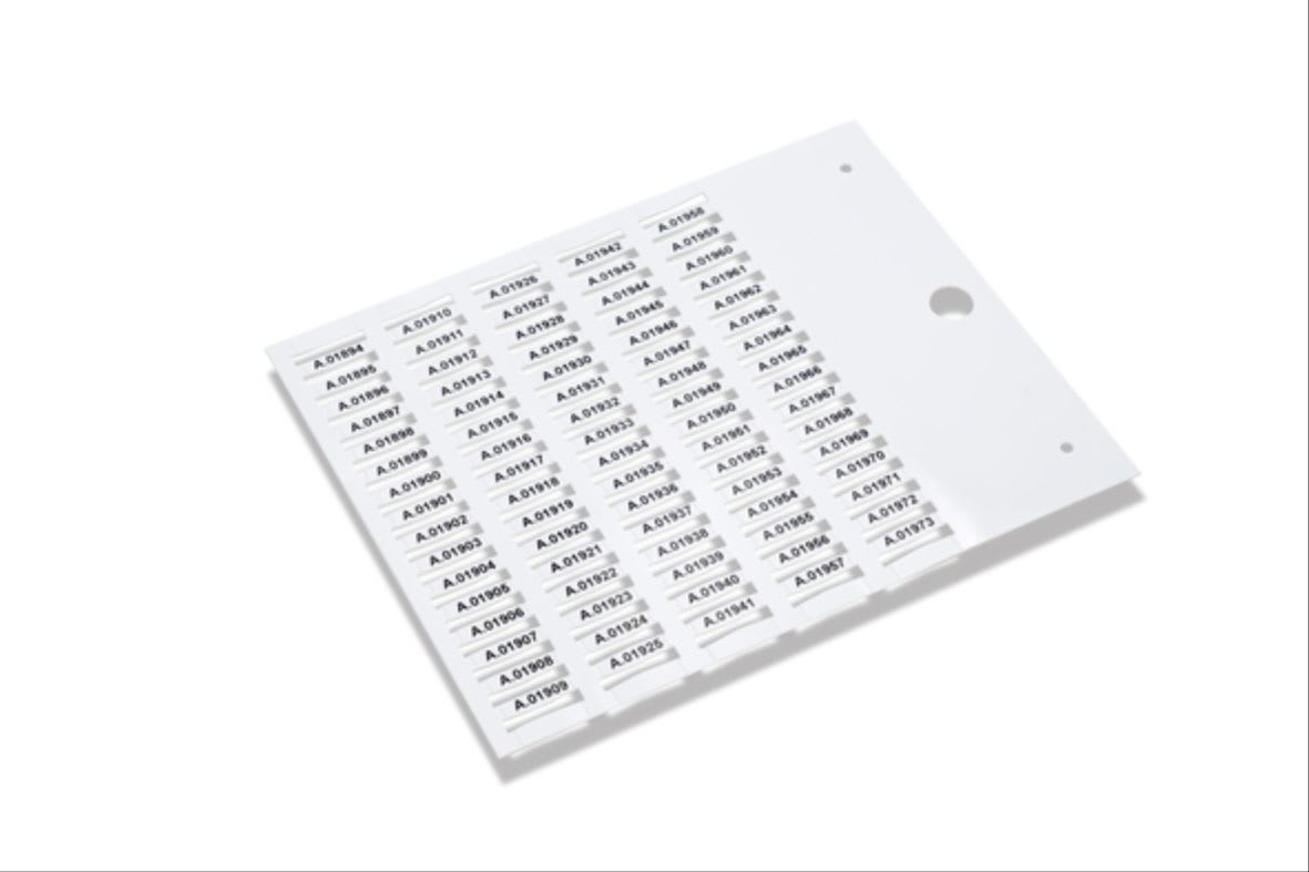 Le targhette MG-TPMF, serieFLAT, vengono utilizzate con i tubetti PMF per la siglatura di cavi, guaine, tubi e componentistica. La scheda e strutturata a pettine: staccando gli steli che la compongono, le targhette si presentano pronte per essere inserite nei tubetti. Una scheda viene stampata completamente in circa 10 secondi, compresa l?eventuale identificazione degli steli e l?indicazione del tubetto da utilizzare.