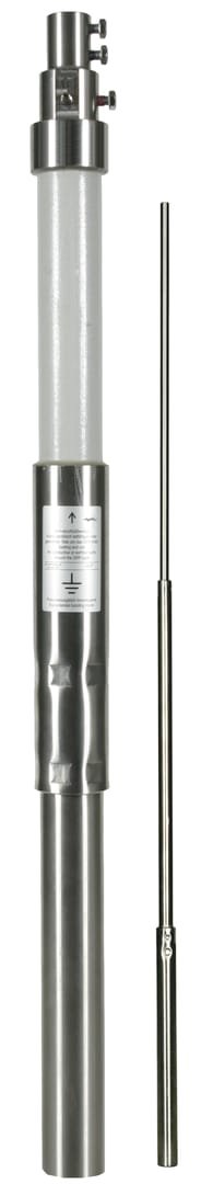 Tubo portante in PRFV/Al con terminale interno ed elemento a molla per l'equipotenzialità per la conduttura HVI long, per il montaggio separato (isolato) di captatori con punta di captazione. Per il rispetto della distanza di sicurezza da componenti metallici secondo CEI EN 62305-3 (CEI 81-10/3). Tubo D50 mm in vetroresina (PRFV), stabilizzato ai raggi UV, colore grigio chiaro, coefficiente di materiale km = 0,7. Esecuzione a corpo unico, combinato con la punta di captazione (D22 / 16 / 10 mm, lunghezz 2500 mm) in acciaio INOX.